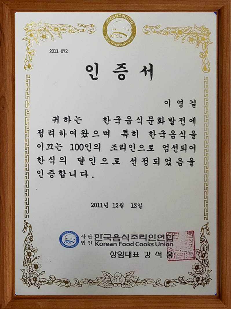 한식달인 100인의 인증서-한글 및 영문 페이지 정보 작성자 관리자 댓글 댓글 0건 조회Hit 181회 작성일Date 24-08-13 14:40 본문 한식달인 100인의 인증서-한글 및 영문 목록 답변 이전글감사장 24.08.13 다음글한식달인 100인의 훈장 24.08.13 댓글 0 댓글목록 등록된 댓글이 없습니다.