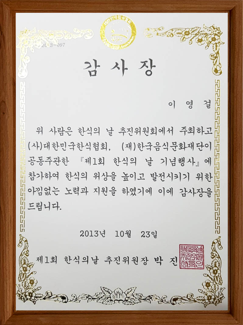 감사장 페이지 정보 작성자 관리자 댓글 댓글 0건 조회Hit 172회 작성일Date 24-08-13 14:41 본문 감사장 목록 답변 이전글상장 24.08.13 다음글한식달인 100인의 인증서-한글 및 영문 24.08.13 댓글 0 댓글목록 등록된 댓글이 없습니다.